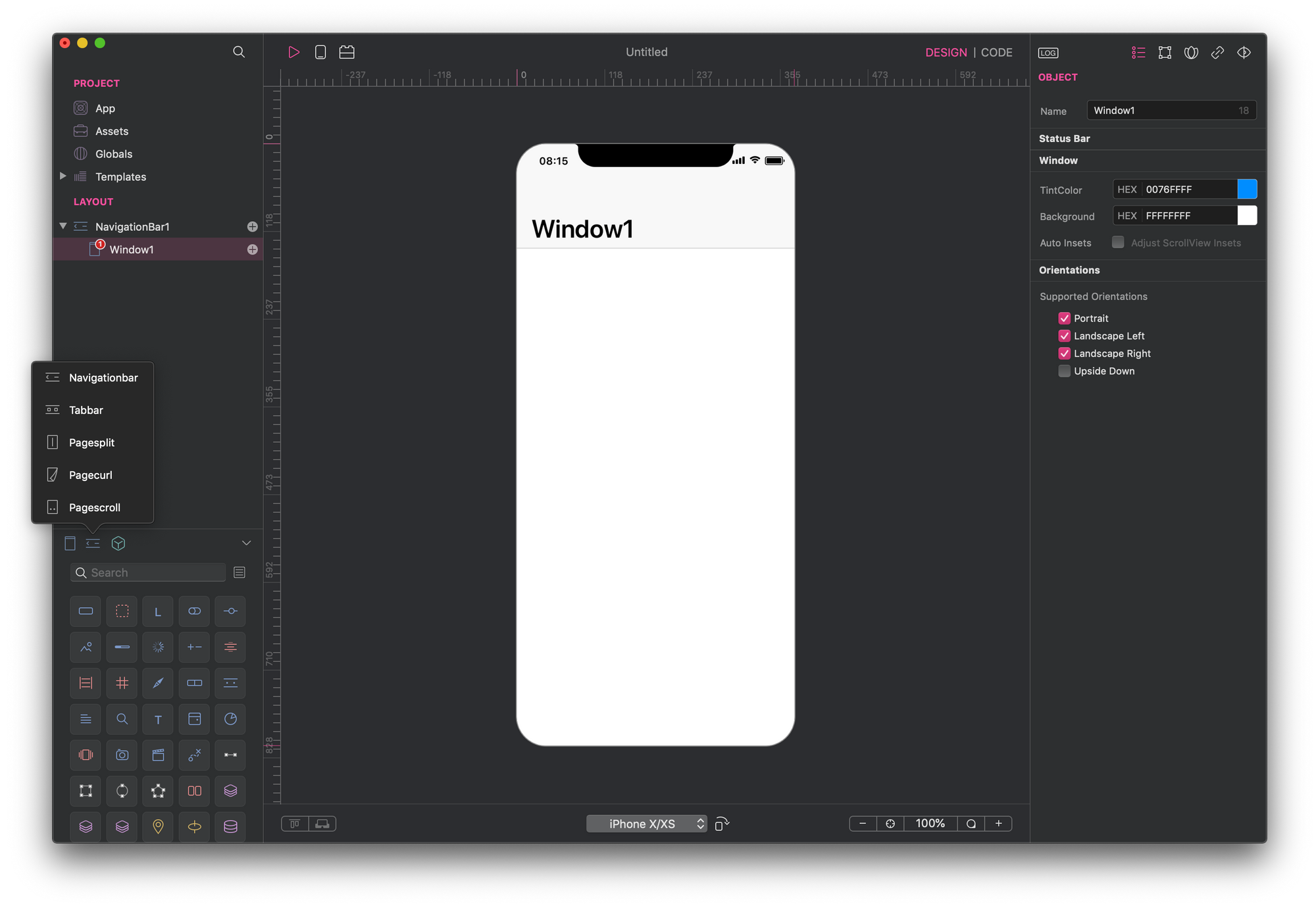 When you start a new project a NavigationBar is added by default. This is the most common way to navigate an iOS application and it represents a Hierarchical Navigation system. Hierarchical navigation lets you build dynamic navigation where you make one choice per screen until you reach a destination.