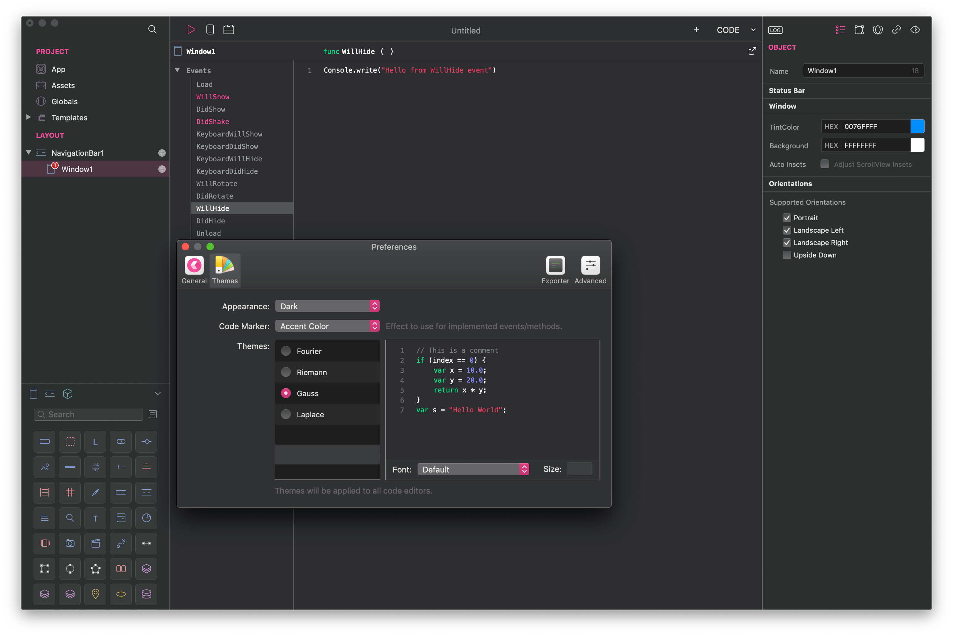 You can now design your app and write source code in the same window. This improves tremendously the productivity while also adding a way to never lose the focus on the most important tasks.