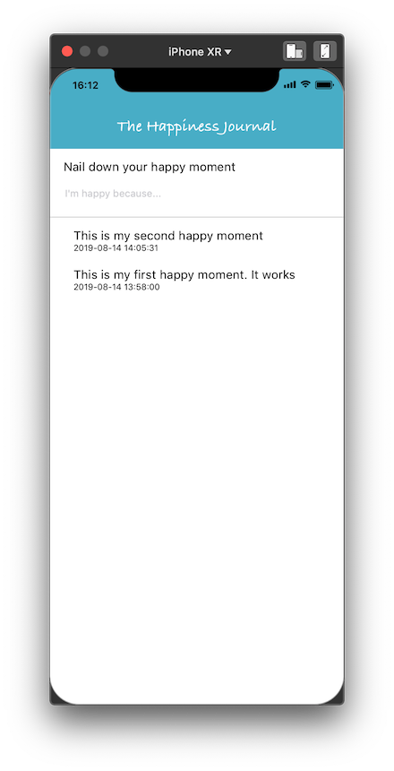 Sometimes you want to store data locally on your iPhone, and to do that you need a database on your local device. This time we're going to use SQLite to create an app to keep track of your happy moments during the day. We want to use it as a kind of log, a quick way to keep track of your daily happy moments while they happen. Technically speaking we are going to define each happy moment record as a logline.
